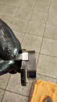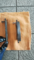 よく、ブレーキを踏んだら「キー」と音が鳴ったら、ブレーキパッド交換目安と言われていますが、その要因は下記の写真のような金属の部品(インジケーター)が、ブレーキローターという部品に当たって鳴っています。